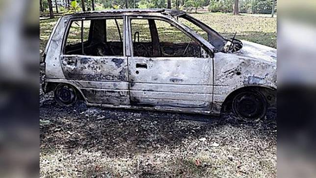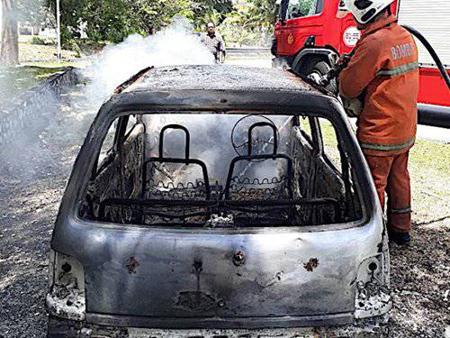 Karena kesal dan marah, sang istri kemudian membakar mobil tua itu.
